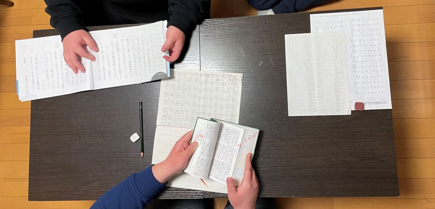 1. 国語と算数の学習(市販ドリルを中心に学習。わからない問題はその場で質問、理解する。)