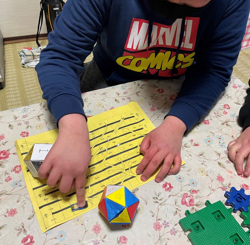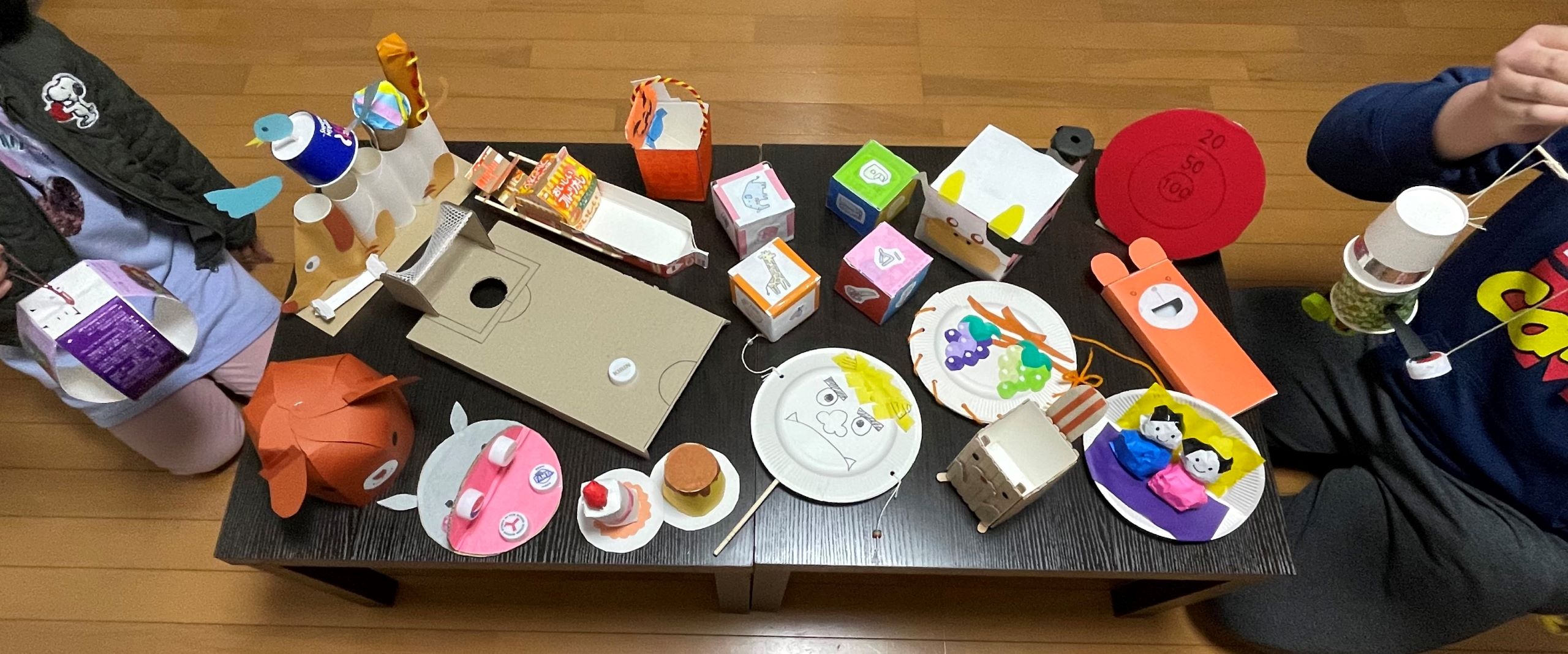 自分たちで遊ぶゲームを工作で自作するなどしています。既存のゲームを真似て作ったり、ルールを自分で考えたりして物作りを楽しんでいるようです。完成後のゲームをしている様子も想像しながら、いろいろ工夫しています。工作の途中で新しいアイデアが浮かぶと作り変えたり楽しい工作の時間になっています。カードゲームやボードゲームなど工作で自作したものを使った遊びを通して楽しく過ごせる時間を提供します。