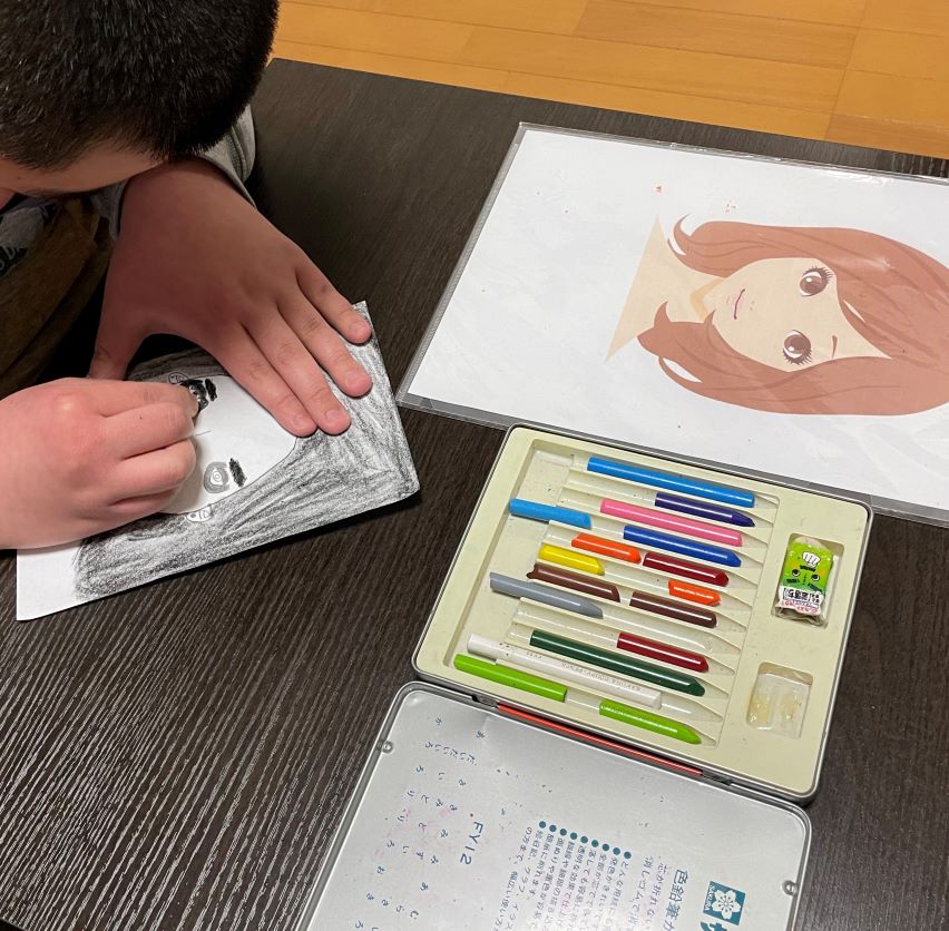 絵画療法は、副作用のない精神神経安定剤です。絵を見ると癒され、自分で絵を描くと癒す効き目はもっと大きいことが昔から知られています。絵を描くことで心を落ち着かせ、豊かな気持ちにさせます。ハックルベリーの大切な活動の一つと考えています。