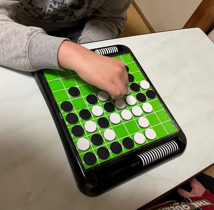 オセロなどのボード全体を視覚で捉えながら、手を動かし、先の展開を読むという作業をすることで、右脳が刺激され、思考力や記憶力のアップのほか、集中力や直感力も養われます。最初は並べるだけだったり弾いて遊んだりするだけですが、少しずつルールを覚え、ゲームに勝ったり負けたり、悔しかったり嬉しかったりを繰り返し、ルール以外にも遊びのマナーなども覚えていきます。子どもにとっては遊びの場が学び、成長の場になっています。